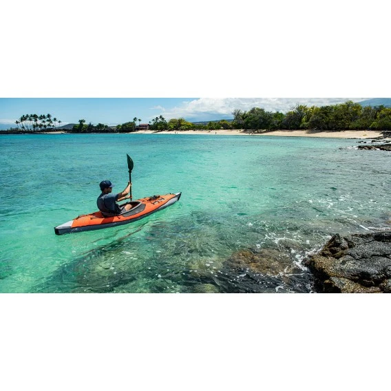 Das Advanced Frame ist ein Hybrid aus einem Faltrahmenkajak und einem aufblasbaren Kajak. Mit eingebauten Aluminiumrahmen in Bug und Heck schneidet sich dieses Kajak wie ein Messer durch das Wasser und kann sich, auch dank Drop-Stich Boden, mit einem festem Kajak messen. Besonders komfortabel ist der Sitz mit seitlichen Stützen und ausblasbarer Lendenstütze. Das Heck fungiert als Skeg und verbessert den Geradeauslauf. Extrem haltbare Materialien in einem 3-Lagen Aufbau in Kombination mit High-End Komponenten machen das Kajak langlebig. An Board gibt es viel Stauraum für Gepäck damit auch längere Fahrten kein Problem sind. Das Kajak ist in wenigen Minuten aufgebaut und lässt sich ohne Probleme mit einem kleinen Packmaß auf einen Wochenendtrip mitnehmen.