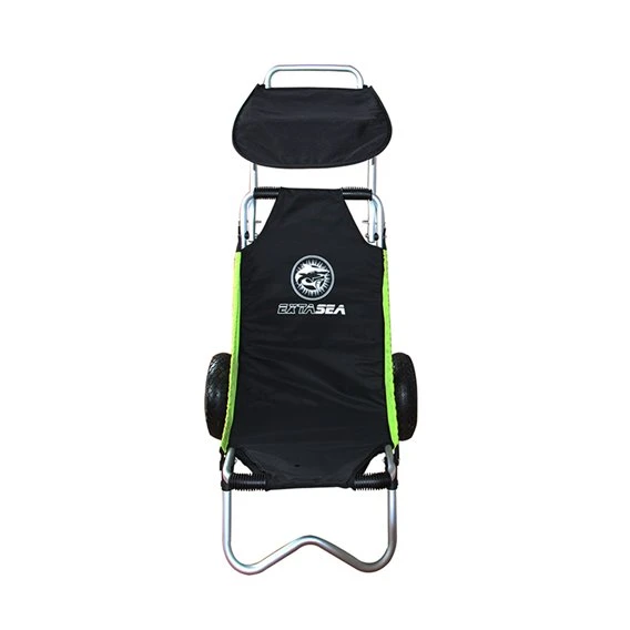 Take it easy! Mit diesem Gefährt können aufblasbares Kajak, SUP, Kühlbox oder andere Packstücke bequem ans Ziel gebracht werden. Für die kleine Verschnaufpause zwischendurch kannst du den Transportwagen zum Sitz mit Sonnendach umfunktionieren. Das nichtrostende Aluminium-Gestänge ist leicht aber überraschend stabil. Die Räder lassen dich auch unterwegs nicht am Weg stehen und kämpfen sich auch durch sandigen Untergrund ihren Weg.