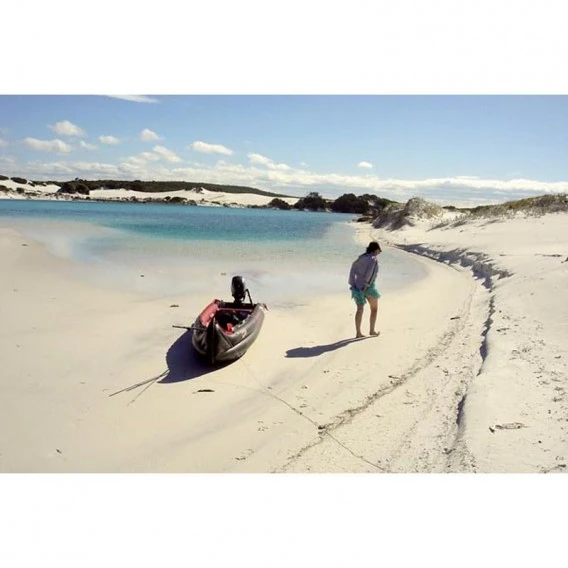 Ganz und gar nicht untragbar sind die Griffe links und rechts am Heck: Zum An- und Festhalten bei einer Kenterung und zum Anheben des Bootes im Trockenen.