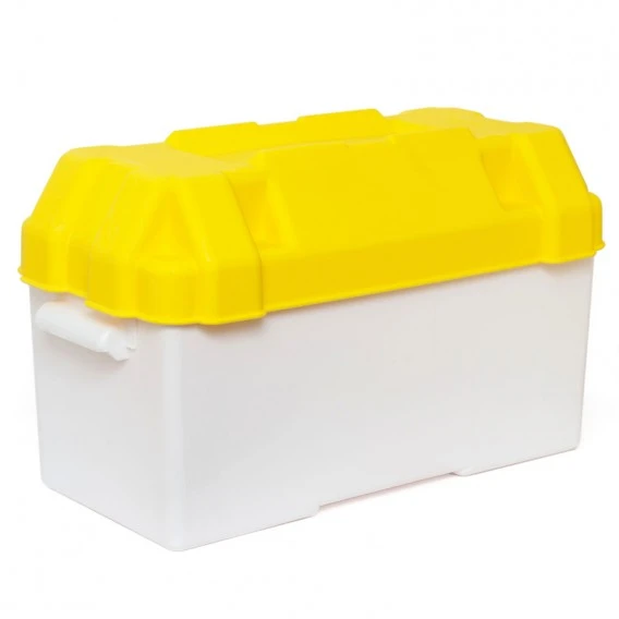 Aus benzin- und säurebeständigem Kunststoff, mit einsetzbarer Trennplatte, um den Kasten an die richtige Größe der Batterie anpassen zu können.