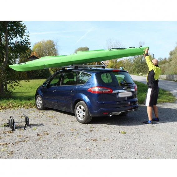 Wem geht es nicht so? Das Boot ist schwer, die Autos werden immer höher. Vielen Paddlern ist der Sport durch das teilweise sehr Kraft raubende Handling verleidet. Mit der PRIJON Beladehilfe kann eine Person ohne weitere Hilfe ein Kajak einfach aufladen. Die mitgelieferte Spannleine verhindert ein Abrutschen des Kajaks nach hinten. Der Bug wird auf dem Ausleger abgelegt, das Heck auf den Träger gehoben. Ausleger einschieben, Boot festzurren, fertig!